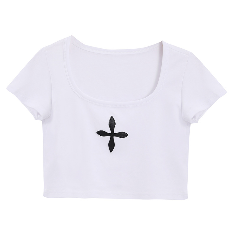 新款 U领纯欲露锁骨辣妹修身 T恤女夏季 短袖 露脐洋气设计感上衣 短款