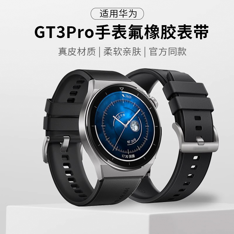 适用于华为gt3pro表带真皮创意个性 灰色氟橡胶防水纯白色腕带