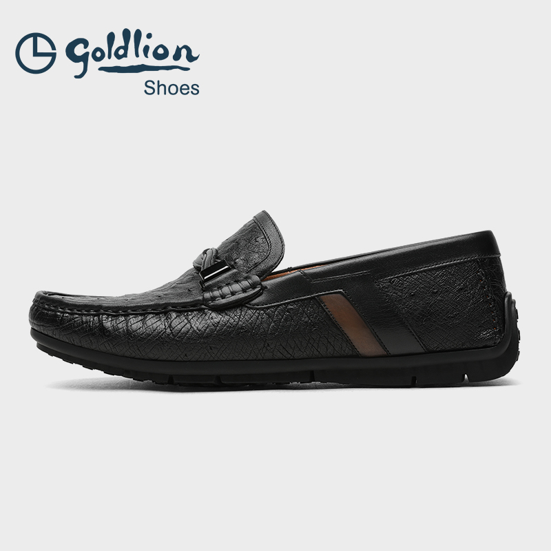 新款 柔软轻便时尚 鸵鸟皮时尚 一脚蹬豆豆鞋 大气 休闲鞋 金利来男鞋