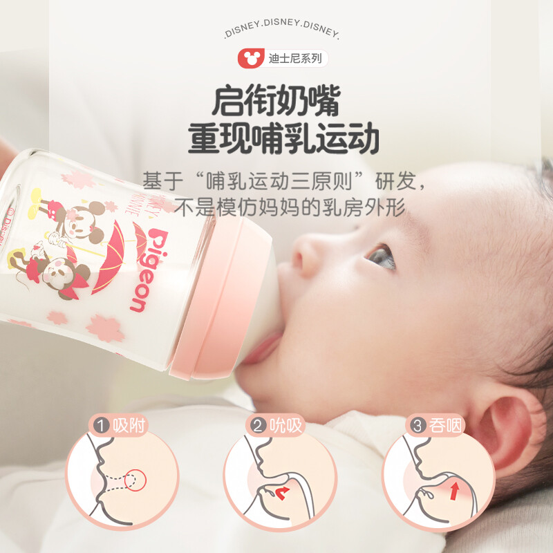 Pigeon贝亲婴儿宽口径玻璃奶瓶新生儿奶瓶0到6个月以上宝宝