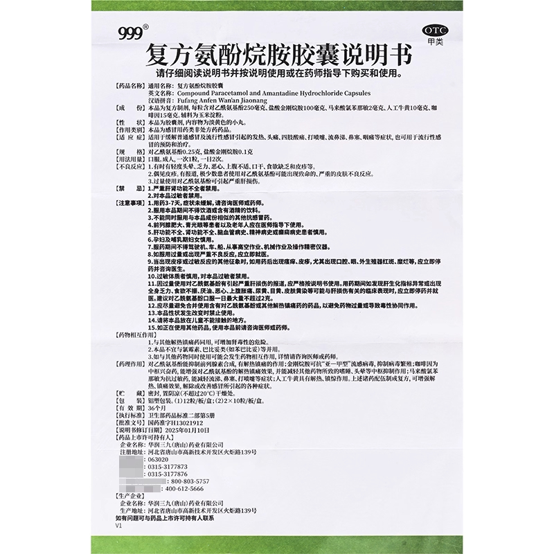 999复方氨酚烷胺胶囊20粒感冒发热打喷嚏头痛鼻塞流鼻涕咽痛