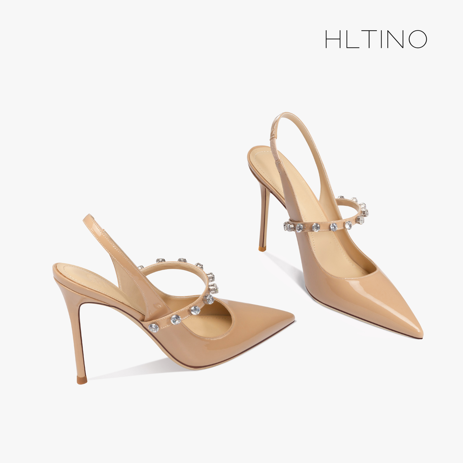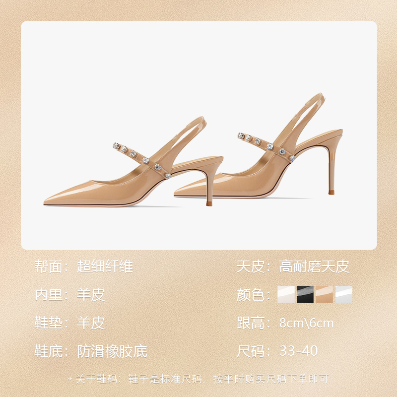 一字绑带水钻细跟高跟鞋 2025年夏季 网红爆款 黑色女士包头凉鞋 新款