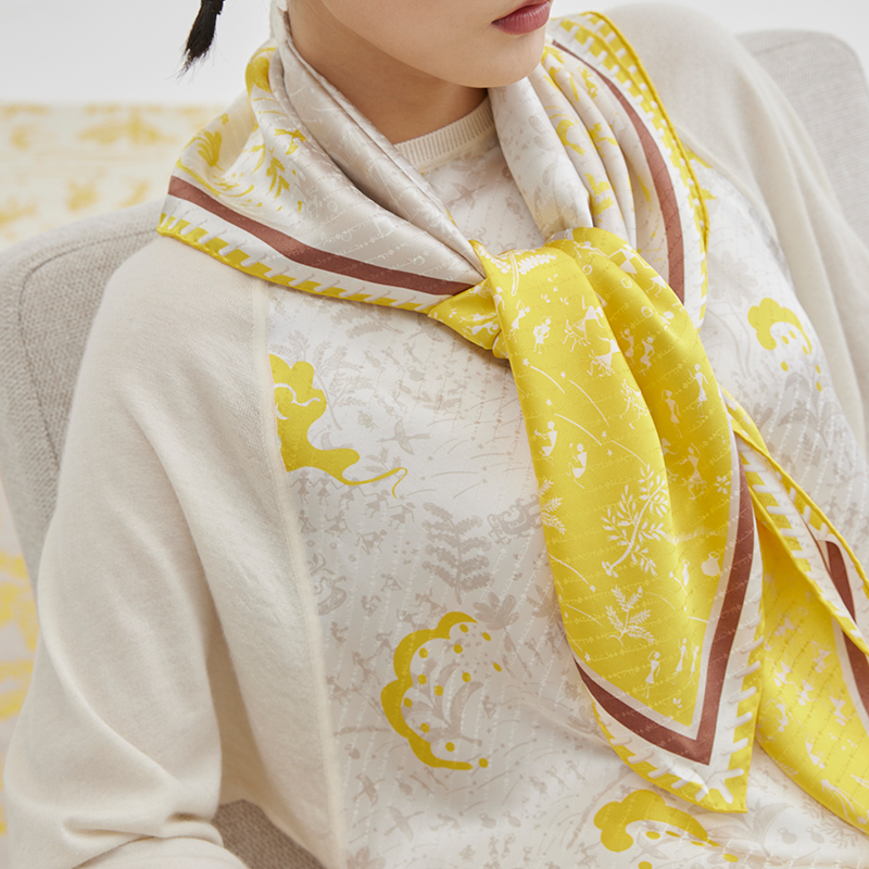 沙涓sandriver零字纹真丝印花方巾围巾免打结多功能领巾项链装 饰