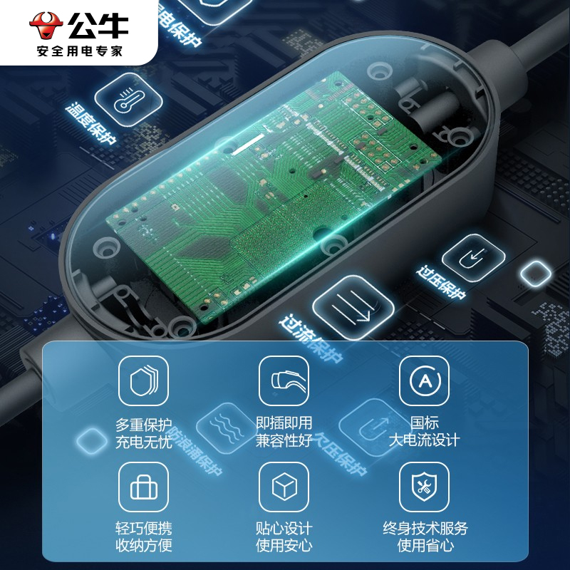 公牛新能源电动汽车充电枪特斯拉随车充便捷式 充电比亚迪荣威大众