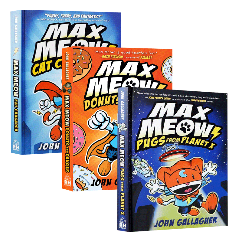马克思猫1 书籍 进口原版 中小学英语课外阅读 Max Meow 英文版 精装 3册 Gallagher 英文原版 全彩漫画书绘本 John 爆笑漫画故事书