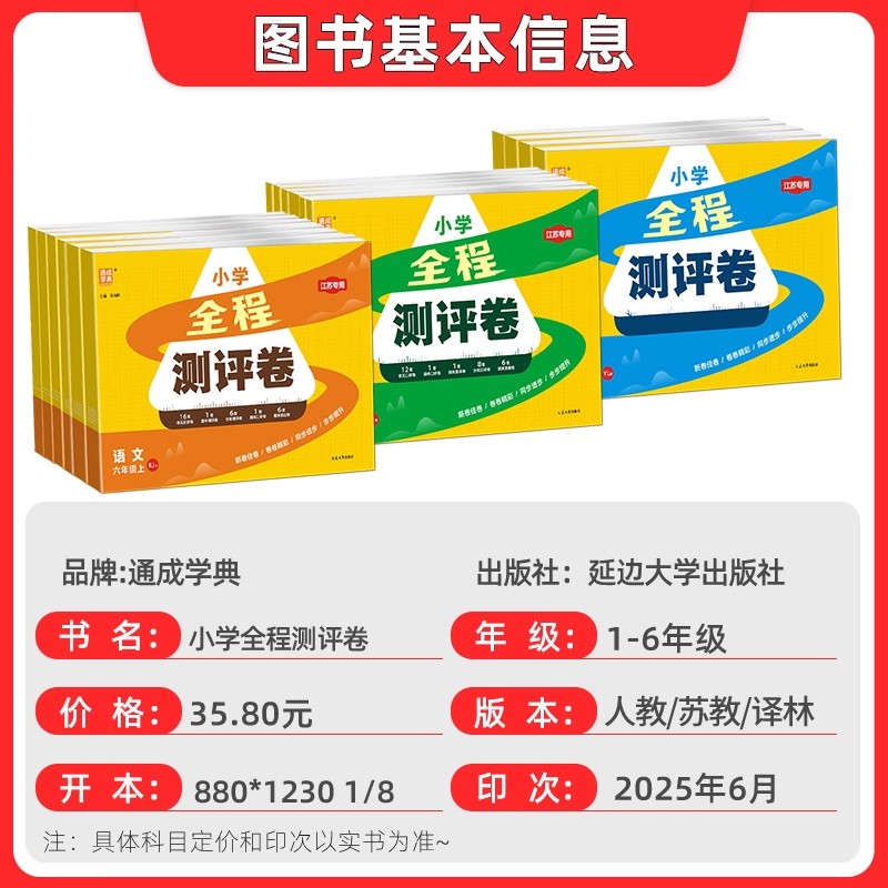 江苏教版 数学英语译林版 学霸试卷亮点给力测试卷基础练习 小学全程测评卷一二年级上册下册三年级四五六年级上下册语文人教版 2025版