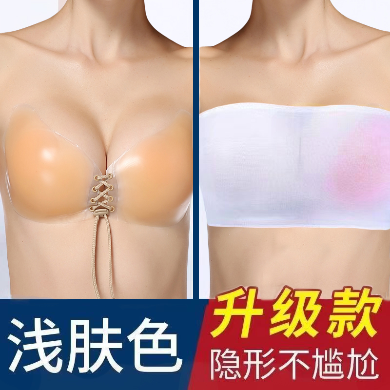 硅胶胸贴女夏聚拢上托婚纱吊带乳贴夏季 隐形防水泳衣游泳专用 薄款