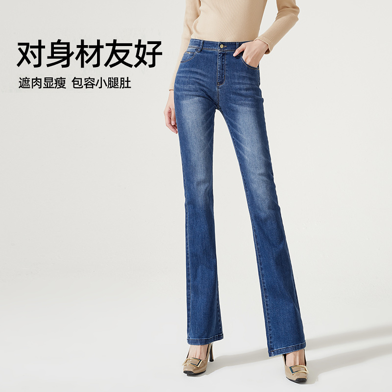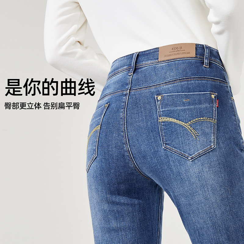 时尚 森柔牛仔 女士潮流秋休闲简约小直筒裤 女磨毛长裤 森马牛仔裤