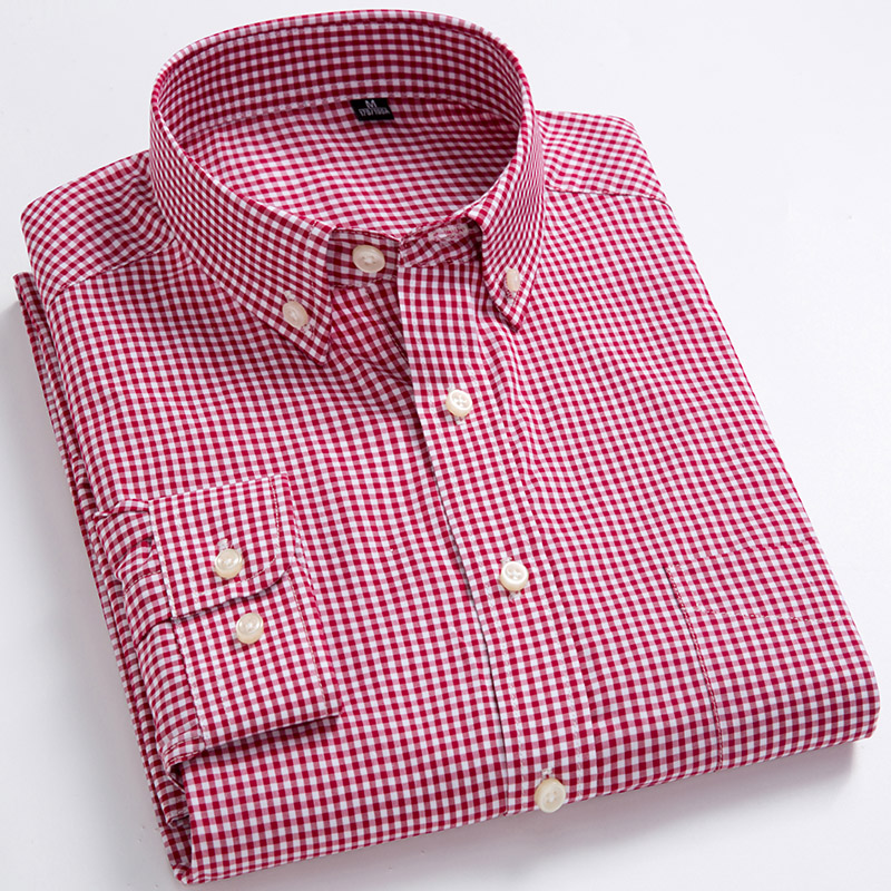 红白小格子衬衫 衬衣百搭休闲寸衫 男士 长袖 外套 秋天新款 纯棉抗皱
