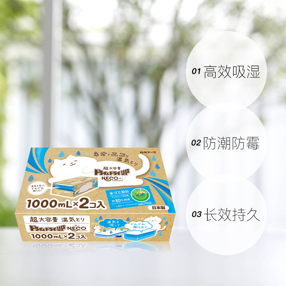 除湿盒干燥剂衣柜吸湿防潮防霉除湿袋1000ml 白元 2盒 自营