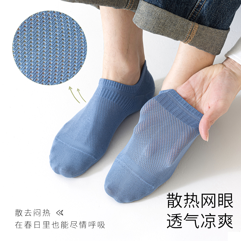 纯棉100%全棉吸汗防臭网眼浅口隐形袜子男士 薄款 短袜 夏季 船袜男款