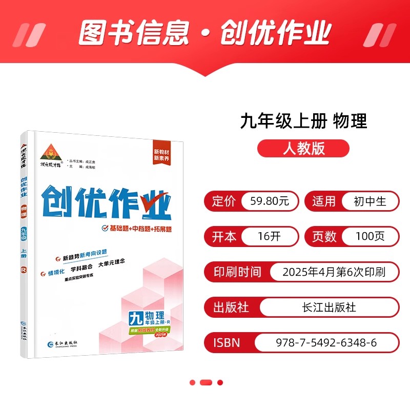 测试卷随书附赠早读手册 测试卷初中语数英政史地物化生人教湘教同步练习册单元 2025秋季 创优作业789年级上下册初中同步练习册单元