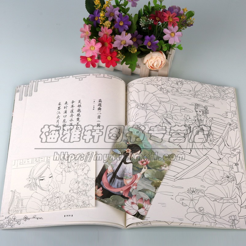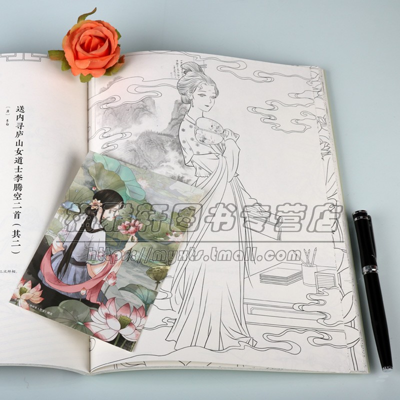 诗词美人图鉴古风线描涂色集知音动漫编古典古风人物美女白描稿基础入门漫画绘画插图创意图古典诗歌诗集绘画作品湖北美术出版 社书