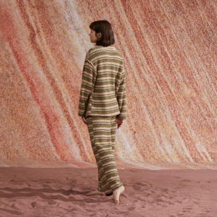 条纹可爱卡通宽松全棉家居服套装 睡衣女士纯棉开衫 长袖 芬腾春秋季