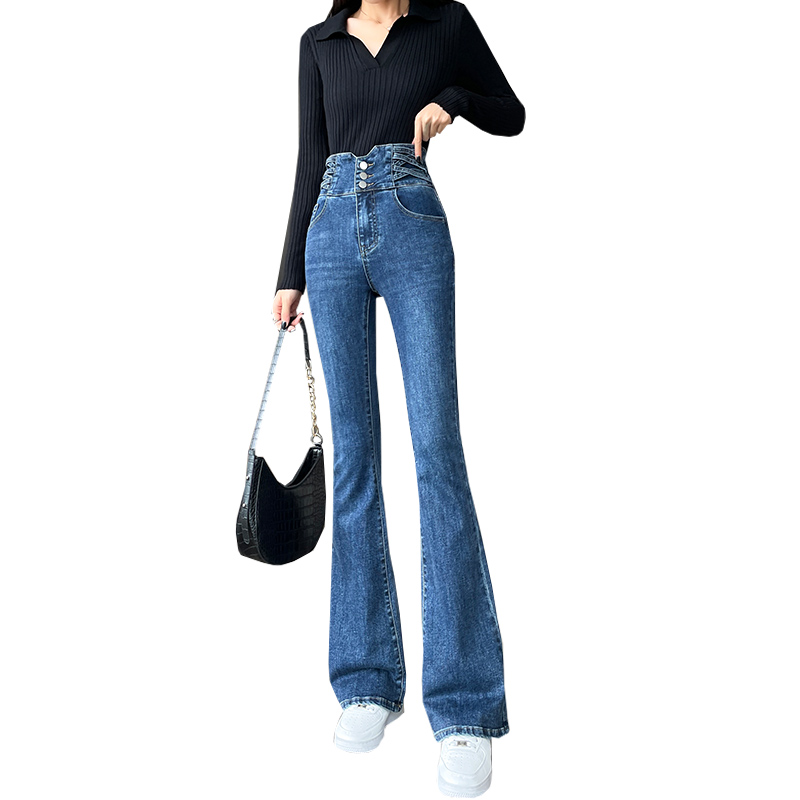 子 显瘦加绒辣妹裤 深蓝设计感高腰微喇牛仔裤 女秋冬加绒2025年新款