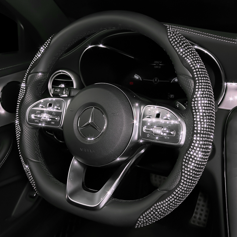 汽车方向盘套女士镶钻高档防滑通用水钻方向盘装 饰女超薄把套女款