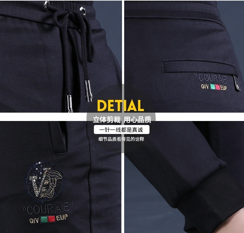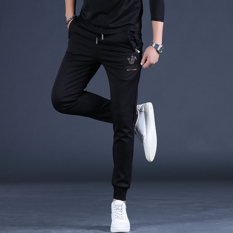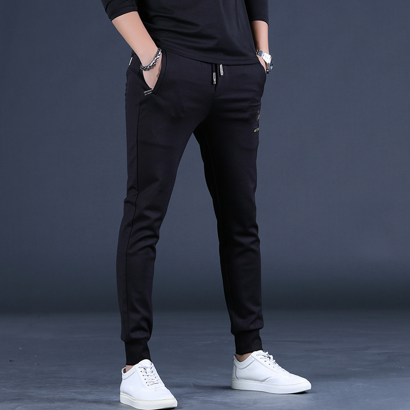 束脚潮流弹力裤 2024秋季 修身 男潮牌痞帅黑色运动男裤 子加绒 休闲裤