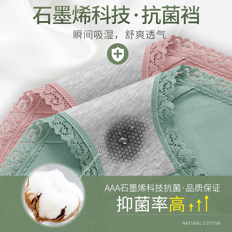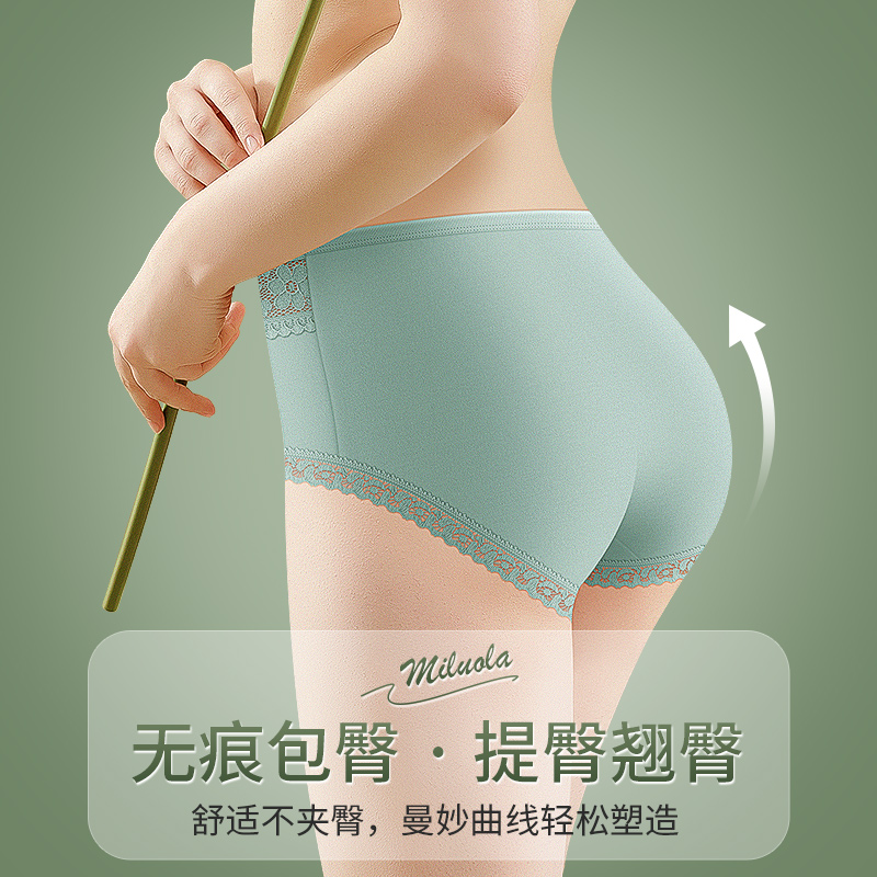 2025新款 薄款 女士纯棉全棉抗菌收腹提臀无痕女生蕾丝夏季 中腰内裤