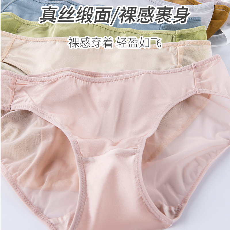 薄款 无痕透气柔软缎面桑蚕丝舒适三角裤 女 缕梵春夏真丝中腰内裤