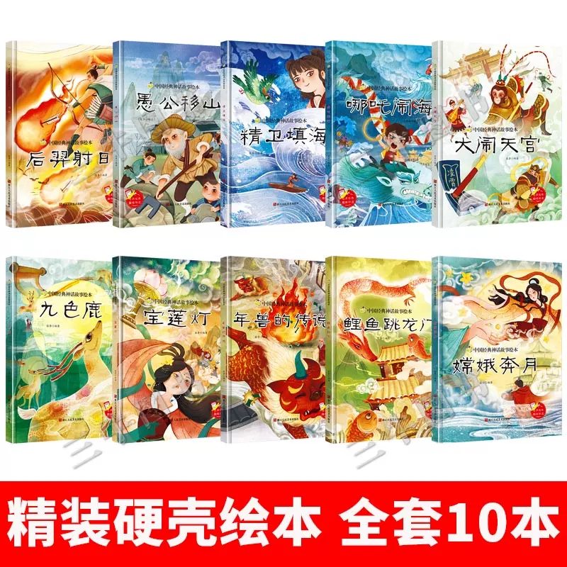 中国古代经典 硬壳绘本幼儿故事书大闹天宫嫦娥奔月哪吒闹海九色鹿愚公移山精卫填海后羿射日小鲤鱼跳龙门 神话传说故事绘本儿童精装