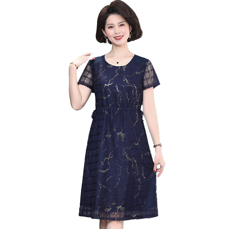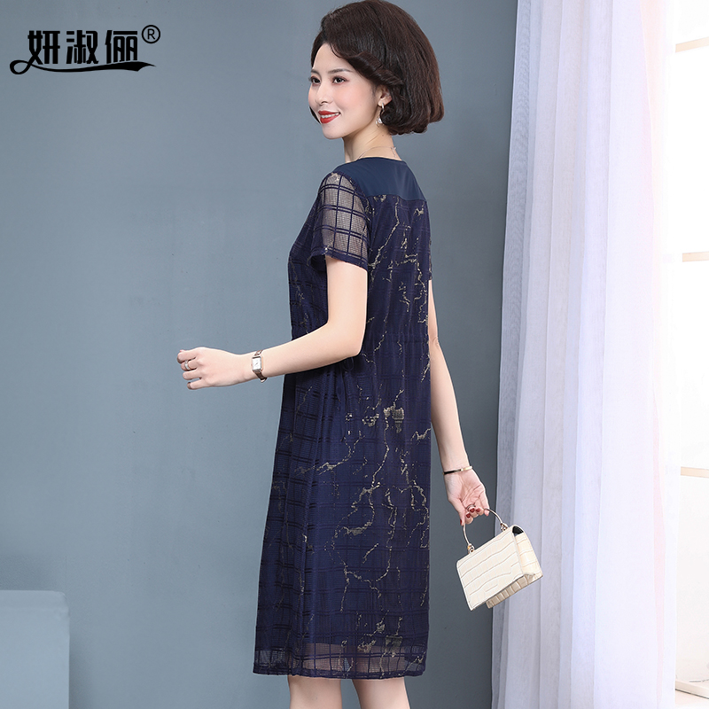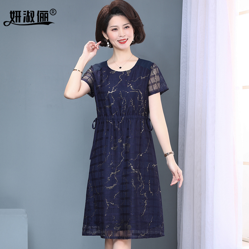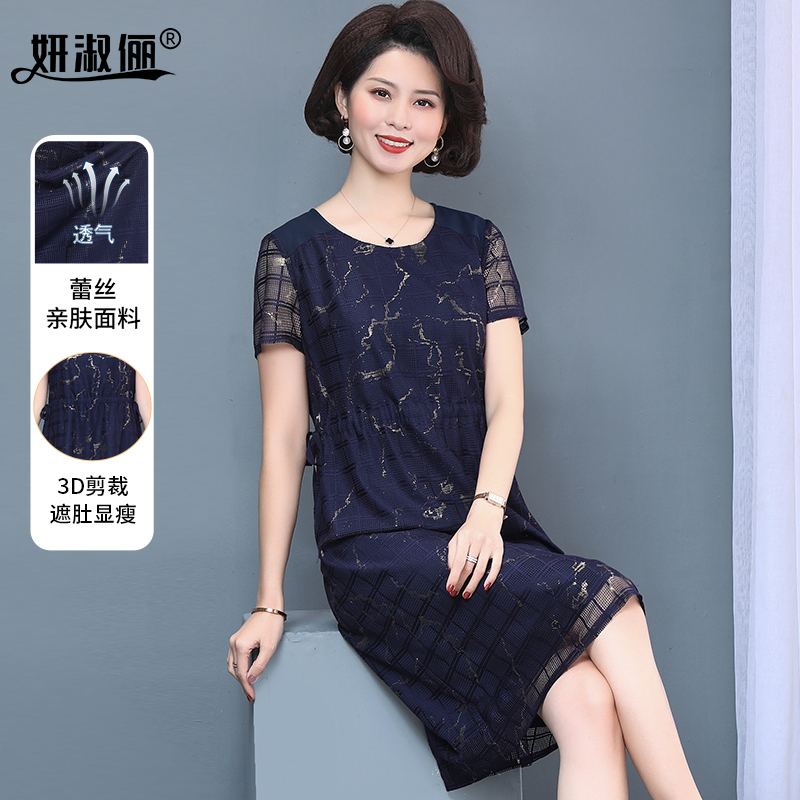 气质网纱裙子 遮肚中老年女士时尚 妈妈夏装 连衣裙洋气收腰宽松大码