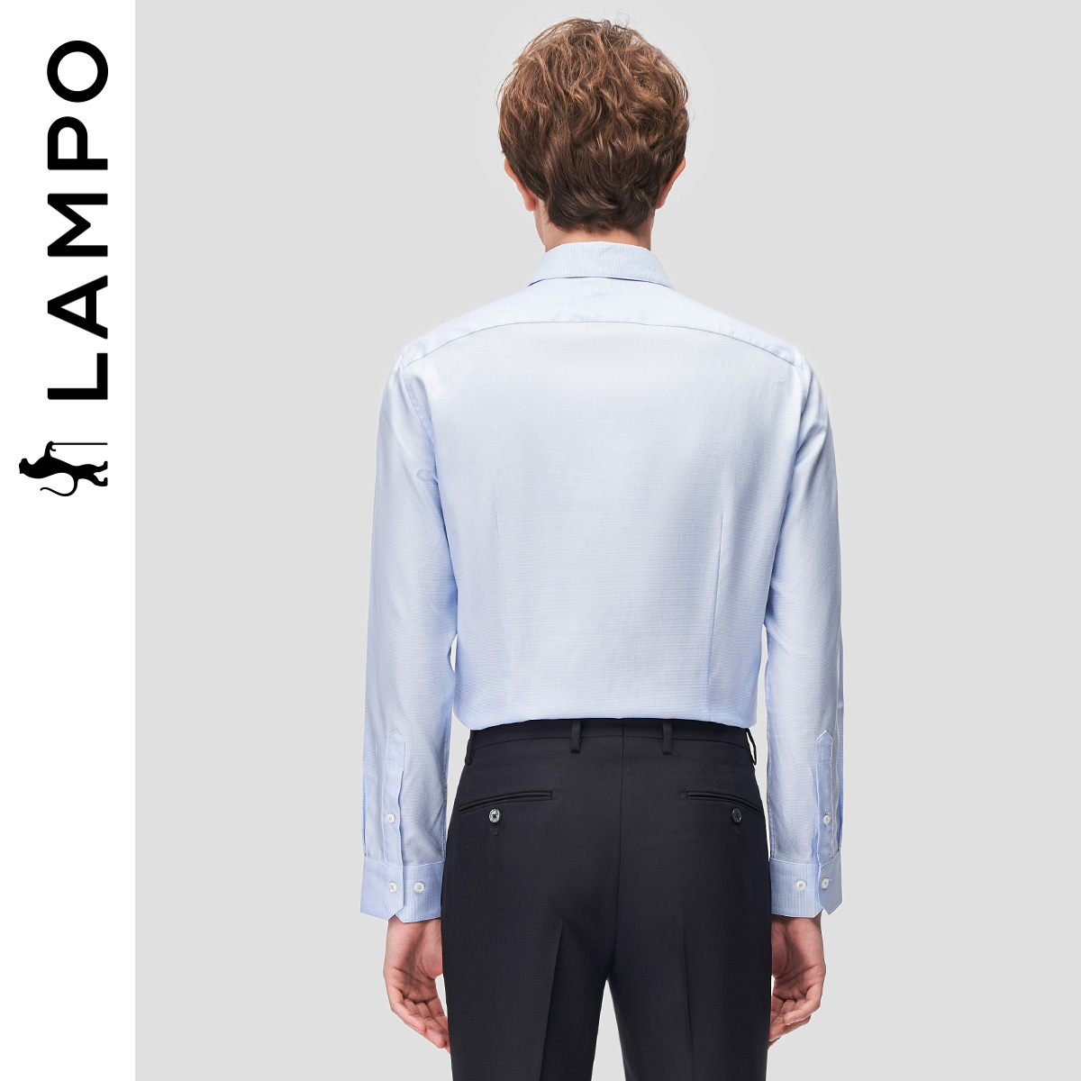 时尚 蓝豹男长袖 LAMPO 浅蓝小提花衬衣男商务衬衫 丝棉
