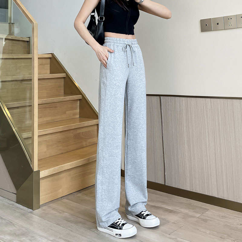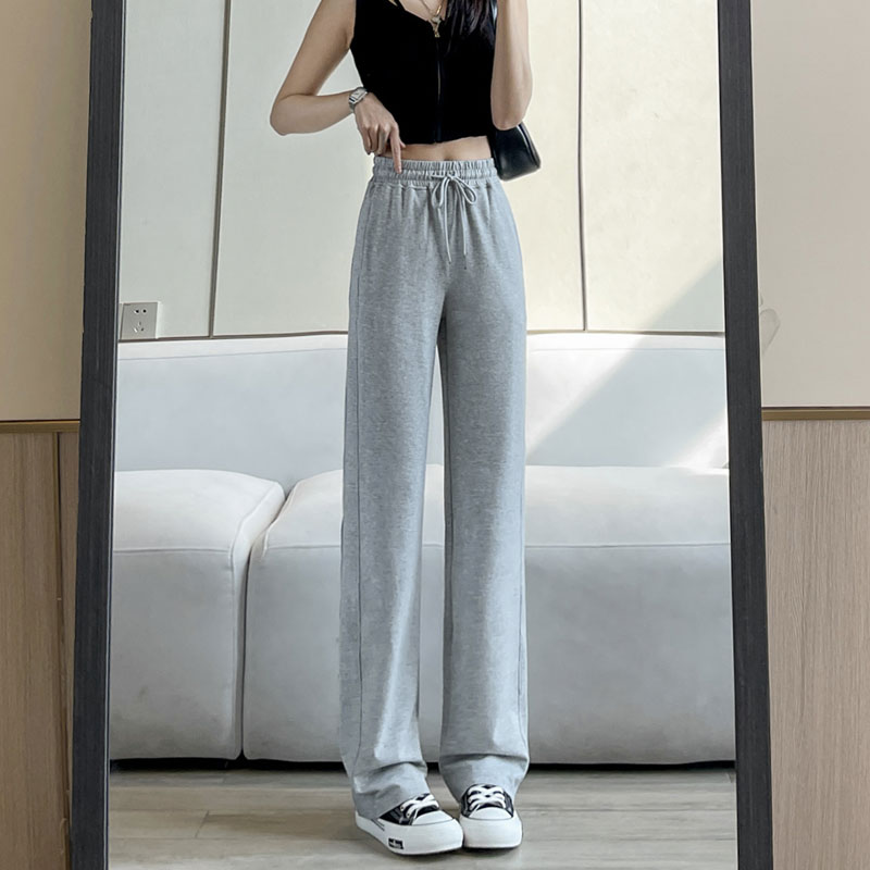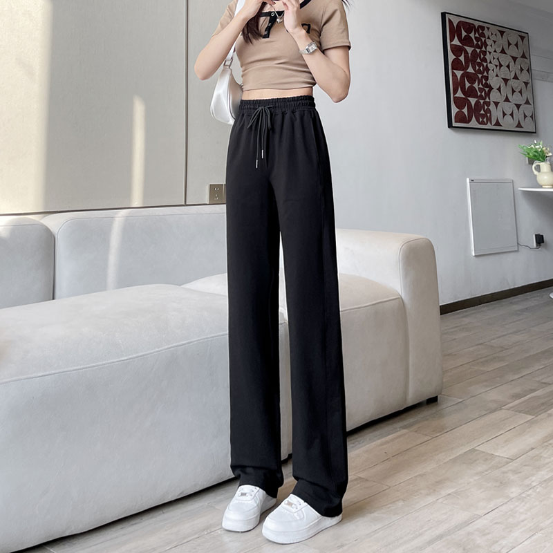 纯棉运动裤 夏薄款 女高个子175超长版 黑色高腰垂感直筒加长阔腿裤