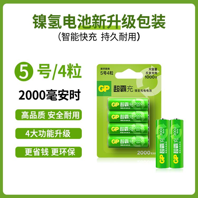 包邮 正品 可充电1000次五号镍氢KTV麦克风话筒儿童玩具泡泡机电池7号七号充电套装 GP超霸5号充电电池2000毫安