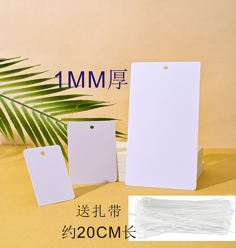 陌释塑料PVC空白标识牌卡片记录挂牌标签室外防水防油防晒含孔扎带手写加厚1MM撕不烂易擦洗写园林小吊卡现货