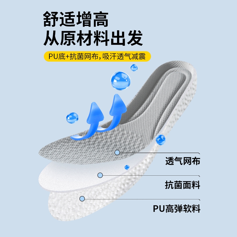 防臭内增高鞋 士软底舒适吸汗运动气垫减震隐形久站不累脚 垫男女款