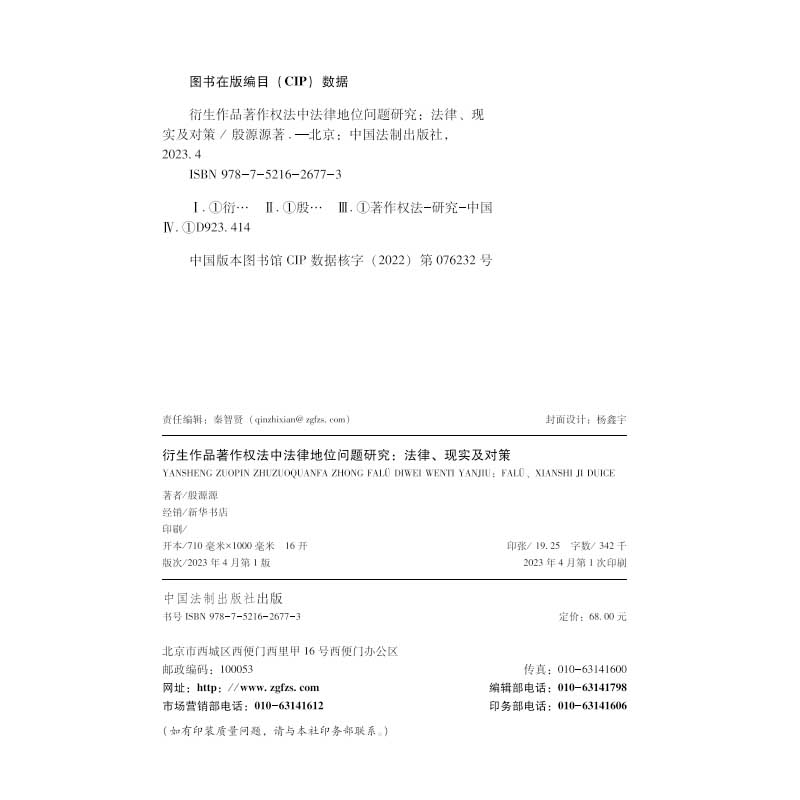 法律 衍生作品著作权法中法律地位问题研究 现实及对策 殷源源 社9787521626773 正版 中国法制出版 2023新书
