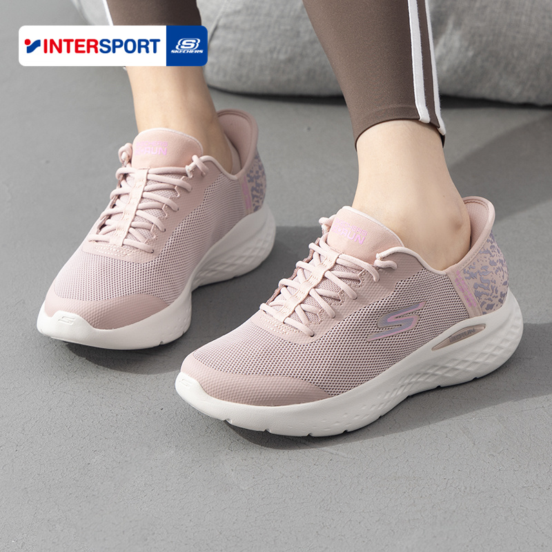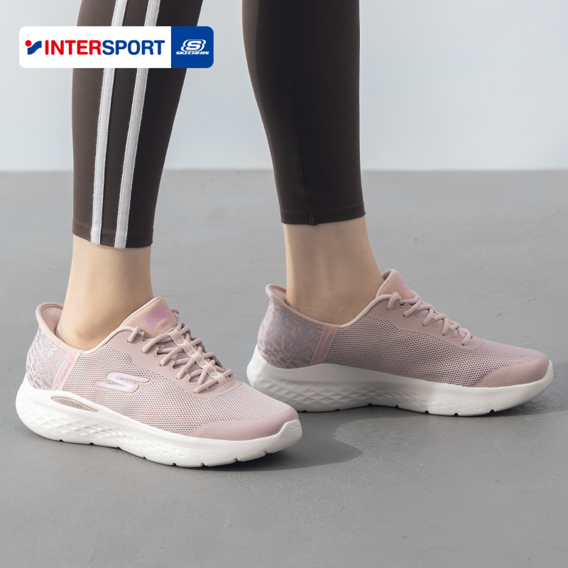 跑步鞋 浅粉色一脚穿休闲鞋 闪穿透气运动鞋 新款 2025秋季 斯凯奇女鞋