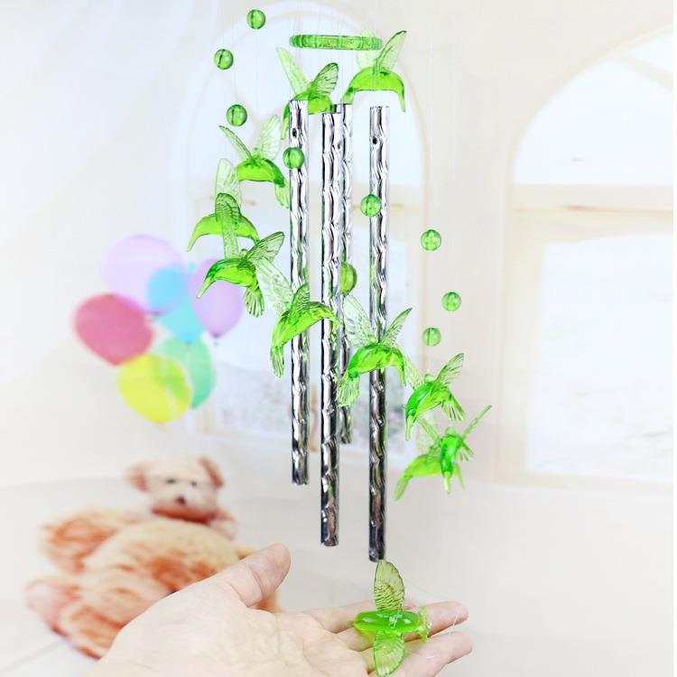 饰定制 房间装 精美仿水晶小蜂鸟小风铃铝管创意家居儿童房装 饰个性