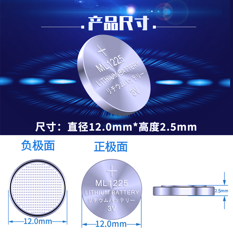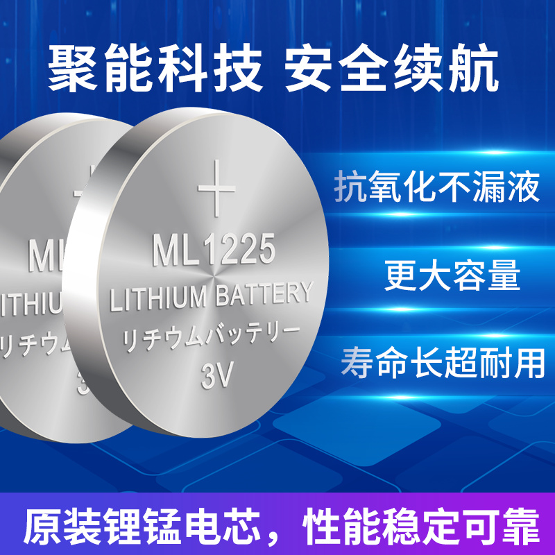 可充电纽扣电池ML1225锂电池3V后备电子可代替CR1225监测胎压汽车钥匙遥控器主板玩具灯钮扣电磁