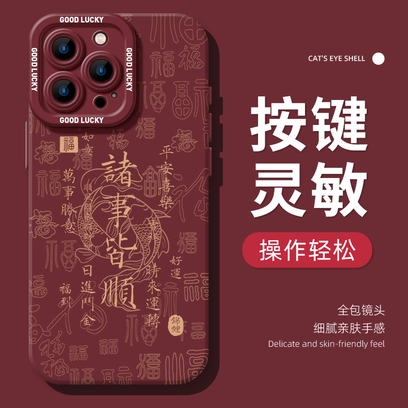 锦鲤适用苹果16手机壳iphone15诸事皆顺13情侣14plus高级11Promax中式 12mini妈妈x长辈xr套xs保护8男女7p新年