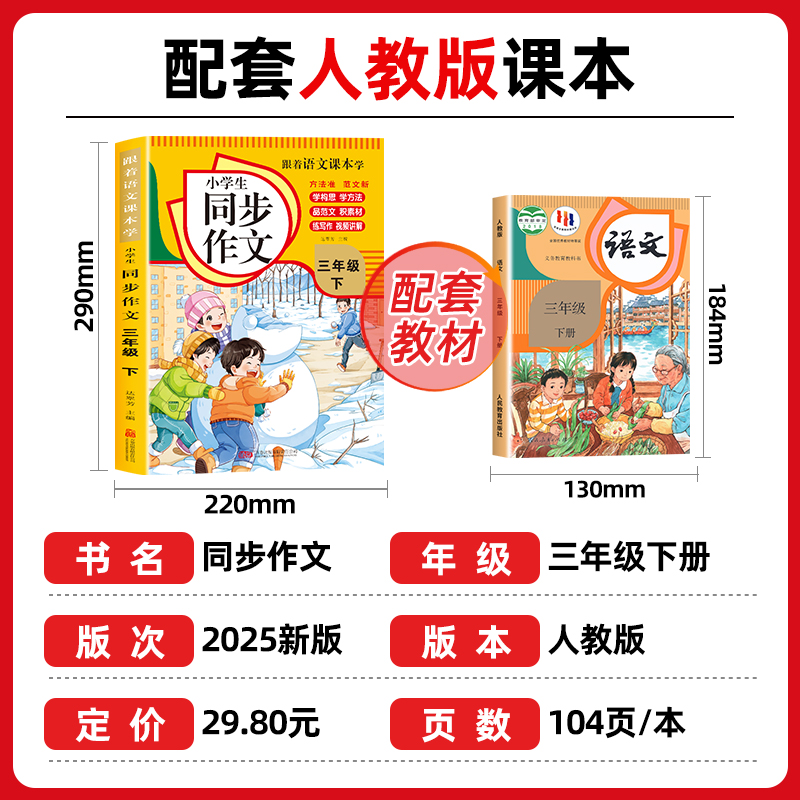 2025同步作文三年级上册下册 语文小学生作文书黄冈小学生满分优秀作文大全3年级范文仿写精选素材全解语文作文下册专项训练 人教版