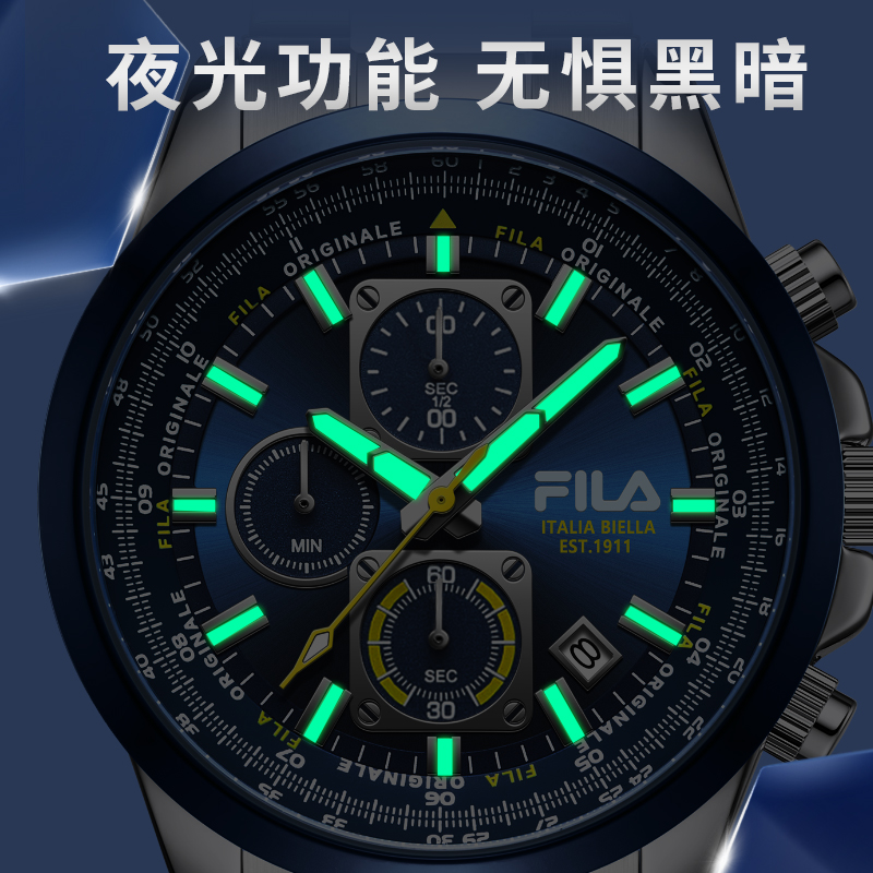 官方正品 石英表钢带欧美腕表 黑曜蓝指挥官时尚 玛莎拉蒂手表男款