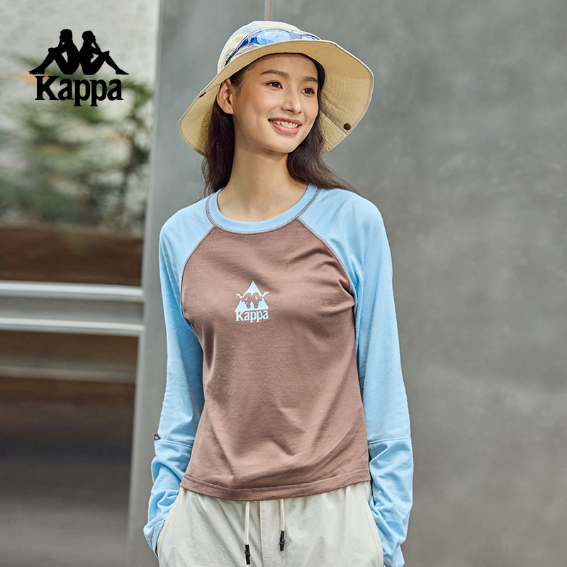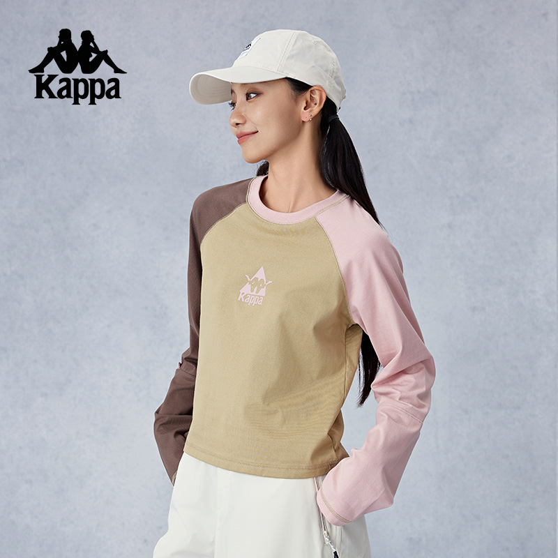 插肩长袖 修身 女短款 Kappa卡帕背靠背复古纯棉运动上衣休闲套头衫