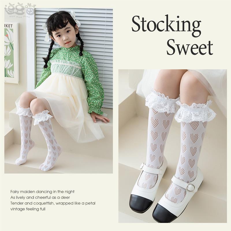 女童袜子洛丽塔公主裙花边袜蕾丝萝莉儿童袜子白色小腿袜中筒网袜