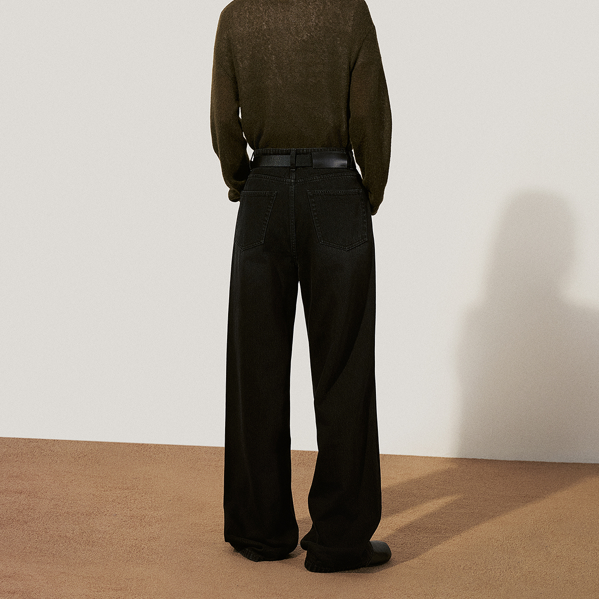 OCHIRLY欧时力 女宽松洗水巴恩风25秋冬尖货 大直筒阔腿牛仔长裤