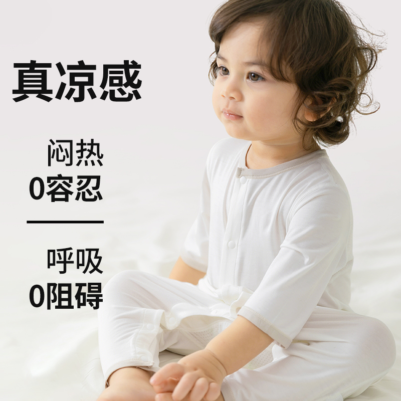 妙贝亲夏季 哈衣冰感呼吸棉网背宝宝空调哈衣爬服 凉感七分袖