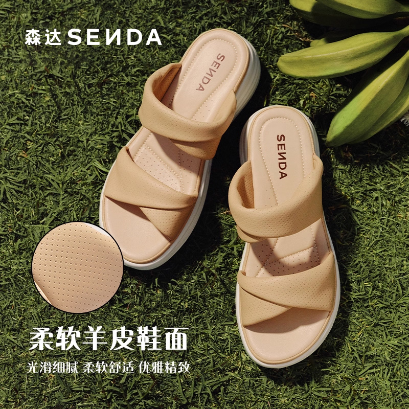 厚底羊皮坡跟凉拖鞋 2025夏新商场同款 XMJ02BL5 女款 森达休闲凉鞋