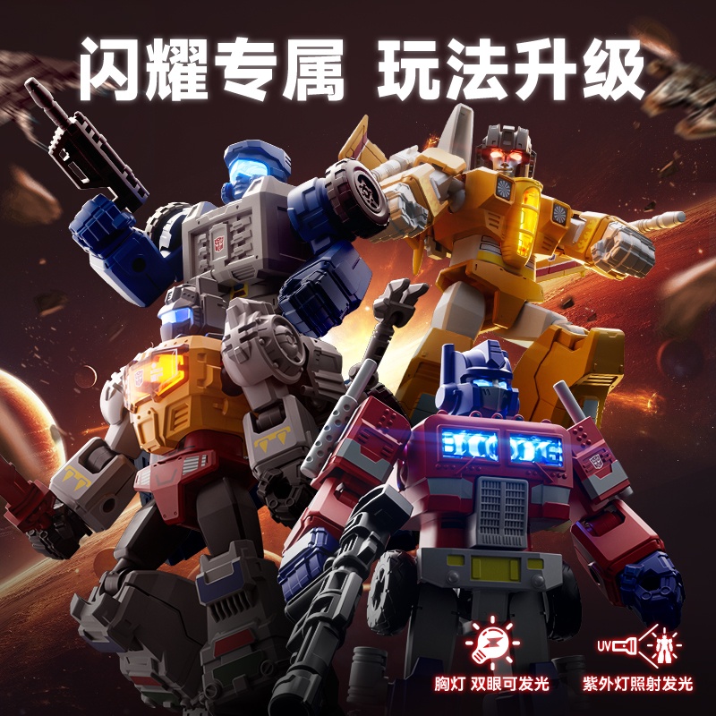 布鲁可变形金刚闪耀版 积木人玩具盲盒发光擎天柱金太阳风模型 拼装