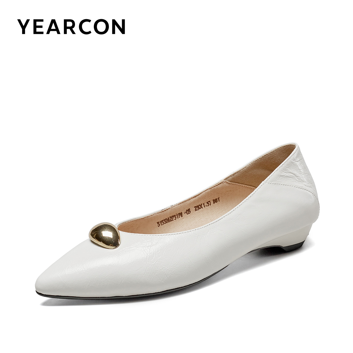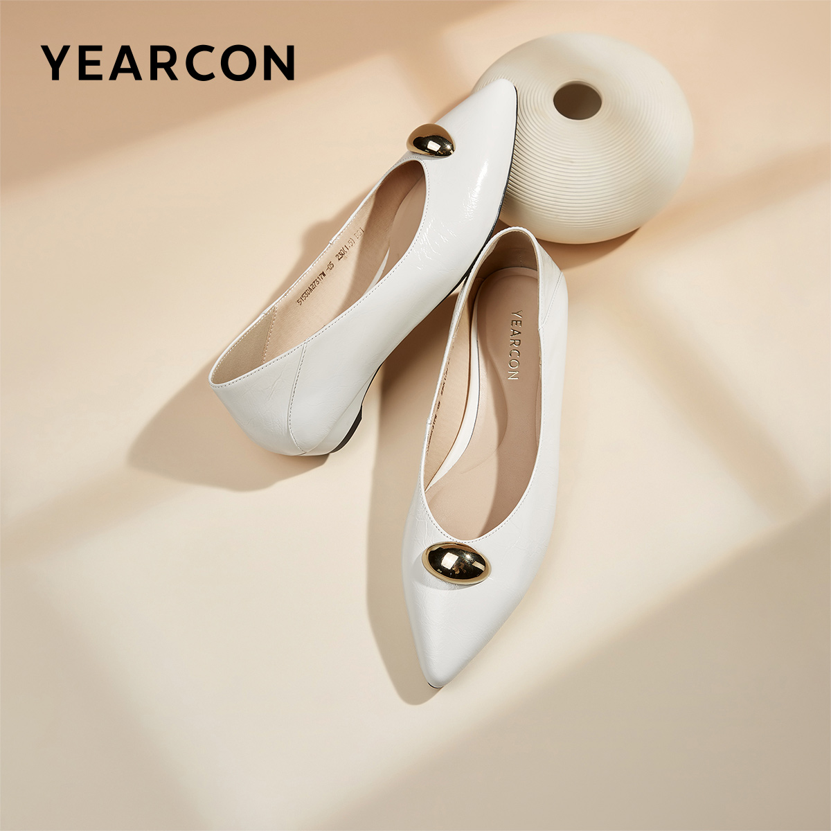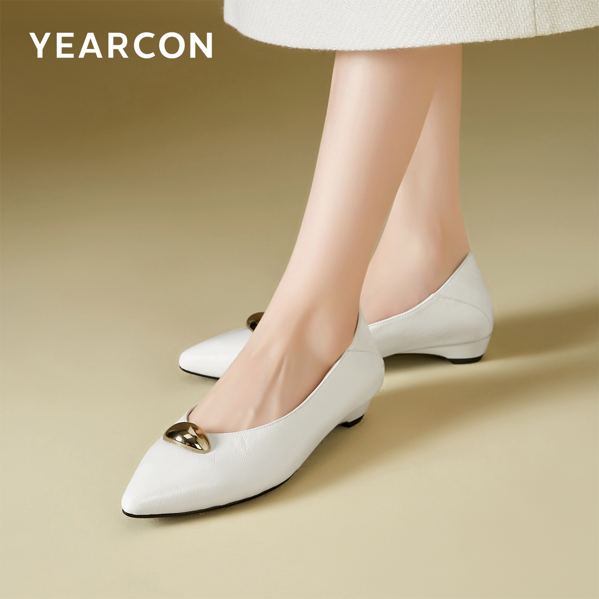 2025新款 鞋 真皮浅口法式 尖头粗跟低跟通勤气质工装 单鞋 意尔康女鞋