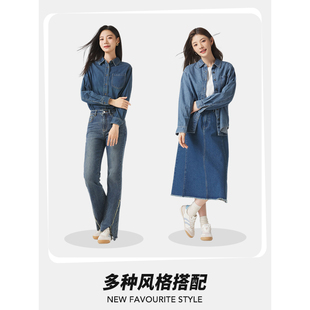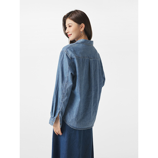 氛围感两件套上衣QW 新款 班尼路S&K系列蓝色翻领披肩衬衫 女秋季