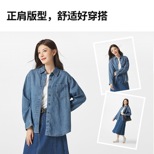 新品 秋季 真维斯复古牛仔衬衫 男女休闲衬衣外套KZ 王一博同款