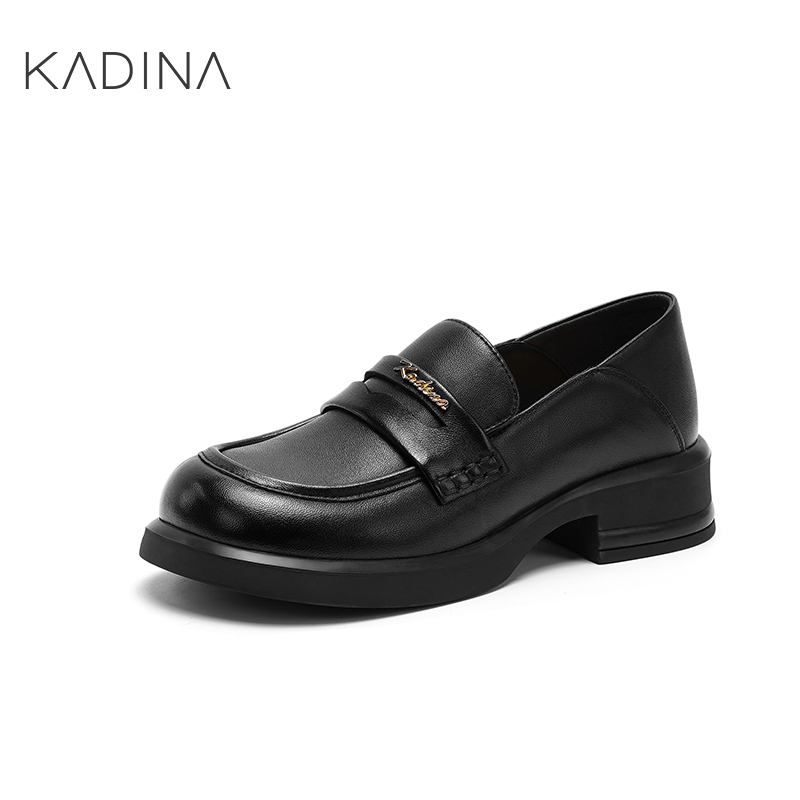 卡迪娜新品 KL244301 复古英伦厚底增高真皮一脚蹬乐福鞋