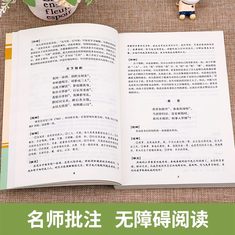 原文注释译文评析全解详注中国古诗词鉴赏传统文化 唐诗三百首 300首 全集完整版 初中生小学生课外阅读书籍 九年级必读原著正版