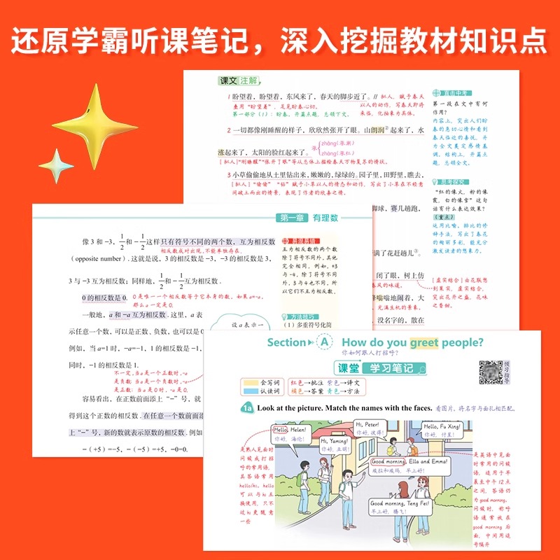 新教材同步衔接预备新初一预习学霸笔记专项训练辅导 外研版 2026新版 汉知简课堂笔记初中七年级八年级上册下册语文数学英语人教版