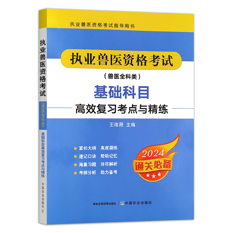 中国农业出版 2024年新版 基础科目高效复习考点与精练通关必备历年真题库模拟试卷 兽医全科类 社 执业兽医资格考试